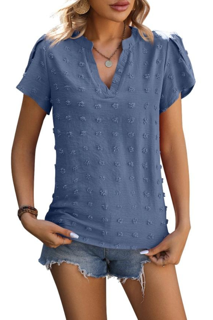 V-Neck Chiffon Swiss Dot Top with Petal Sleeves Shirt